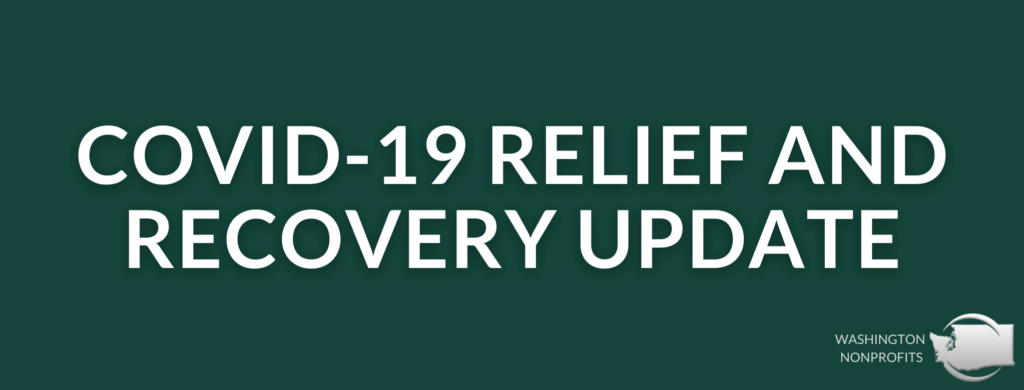 Washington Nonprofits, working alongside our partners, has consistently urged elected leaders at the federal, state, and county levels to include nonprofits in COVID-19 relief and recovery planning and funding. Most recently, we sent a letter to all county commissioners and county executives in Washington encouraging them to include nonprofits in the distribution of $126 million recently allocated from the state.
