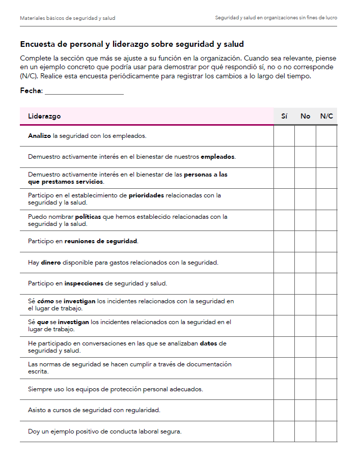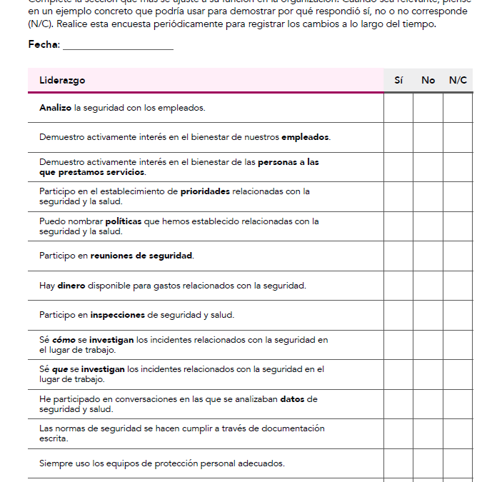 Utilice esta encuesta para recopilar información sobre la cultura de seguridad y salud de su organización.