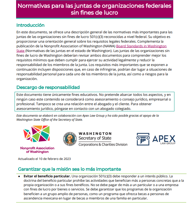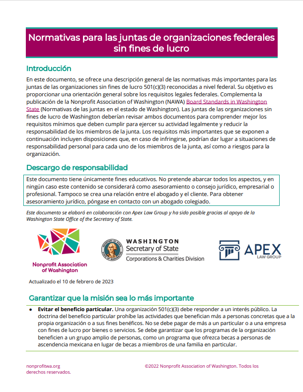 Normativas para las juntas de organizaciones federales sin fines de lucro