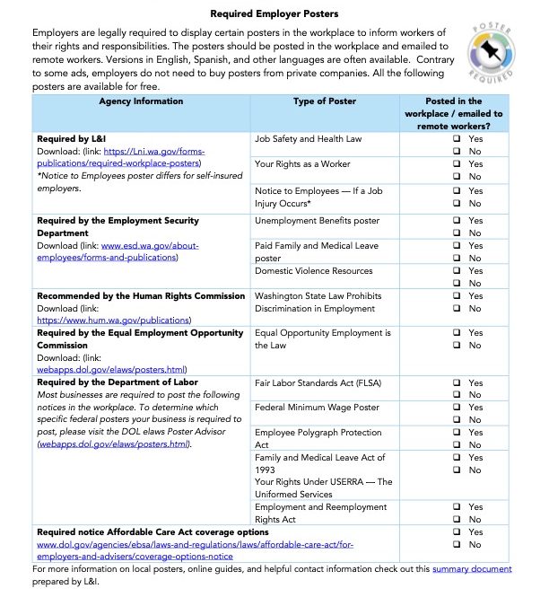Required Workplace Posters by nawa | Dec 1, 2022 Document VaultRequired Workplace PostersA list of posters required for employers to post in the workplace Download File Go Back