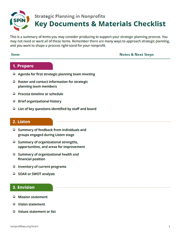 This resource is a summary of items you may consider producing to support your strategic planning process. You may not need or want all of these items.