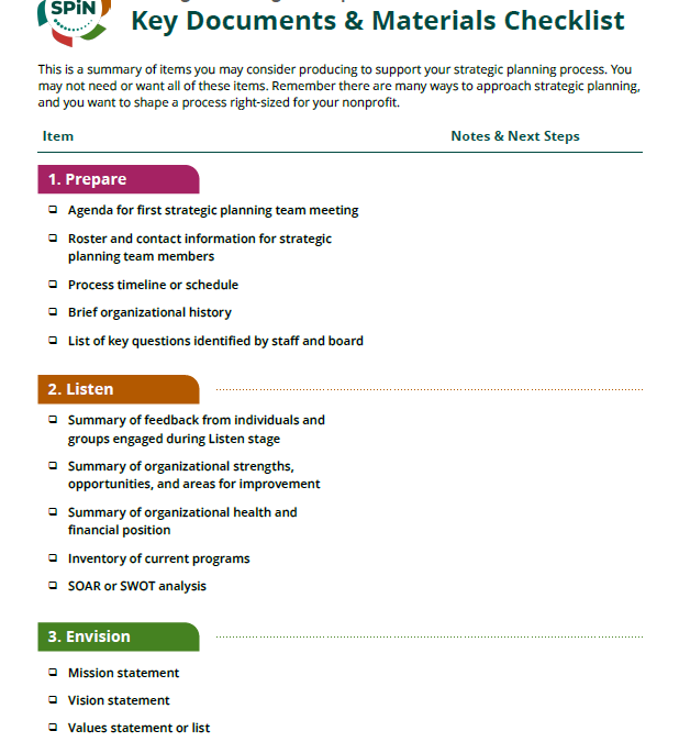 This resource is a summary of items you may consider producing to support your strategic planning process. You may not need or want all of these items.