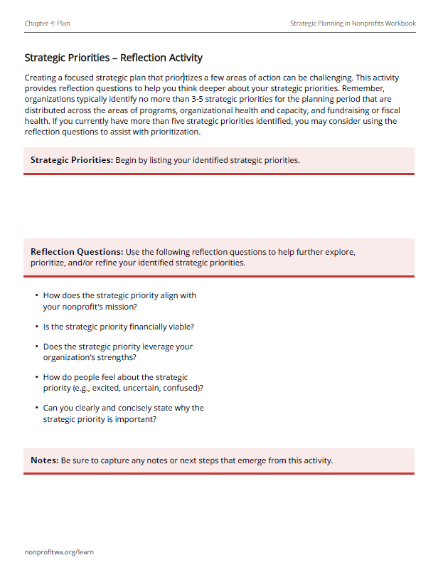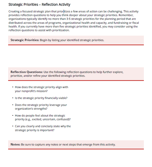 This activity provides reflection questions to help you think deeper about your strategic priorities.